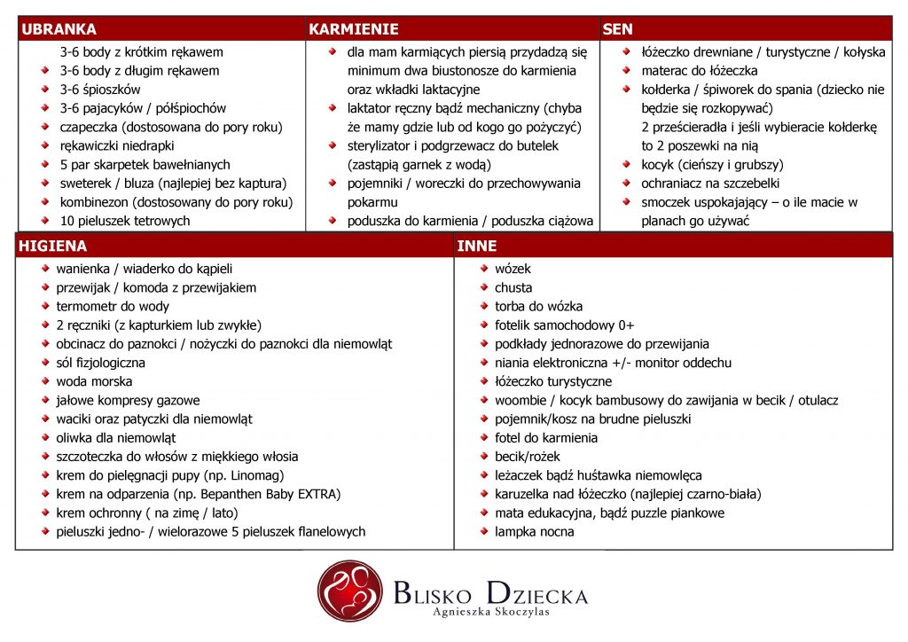 Na dole artykułu znajdziecie wyprawkę dla maluszka w formie pliku – gotową do wydruku i zabrania na becikowe zakupy.